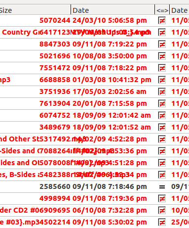 | Description | While using "Synchronize directories" feature, when a filename is too long to fit into "Name" column it overlaps text in Date columns making them unreadable. This part of the filename which does not fit the "Name" column should not be visible. For columns other than "Date" behavoiur is different. The file name overlaps unused space in such columns but it is hidden in the area where such colums have text. It is acceptable (i.e. it is possible to read column contents) but it would be better to have the file name hidden completely as soon as it gets wider than the "Name" column (currently, single letters from the file name are visible between text from consecutive columns). Both of above problems exist only for the "Name" column. Other columns have proper behaviour (e.g. if you make "Date" column extremely narrow this part of the date which will not fit gets hidden as expected). | ||||