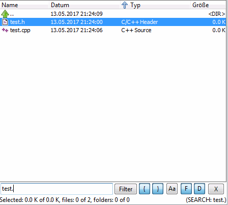 | Description | As seen in the screenshot: Suppose I have two files named test.h and test.cpp in the directory. If I start to search for "test" and then use up/down arrows, I can switch between those two files. As soon as I search for "test.", this is not possible anymore, the selection is stuck at the currently selected file. Let's say that test.h is currently selected. The only way I can now switch to test.cpp is by entering the complete filename. | ||||