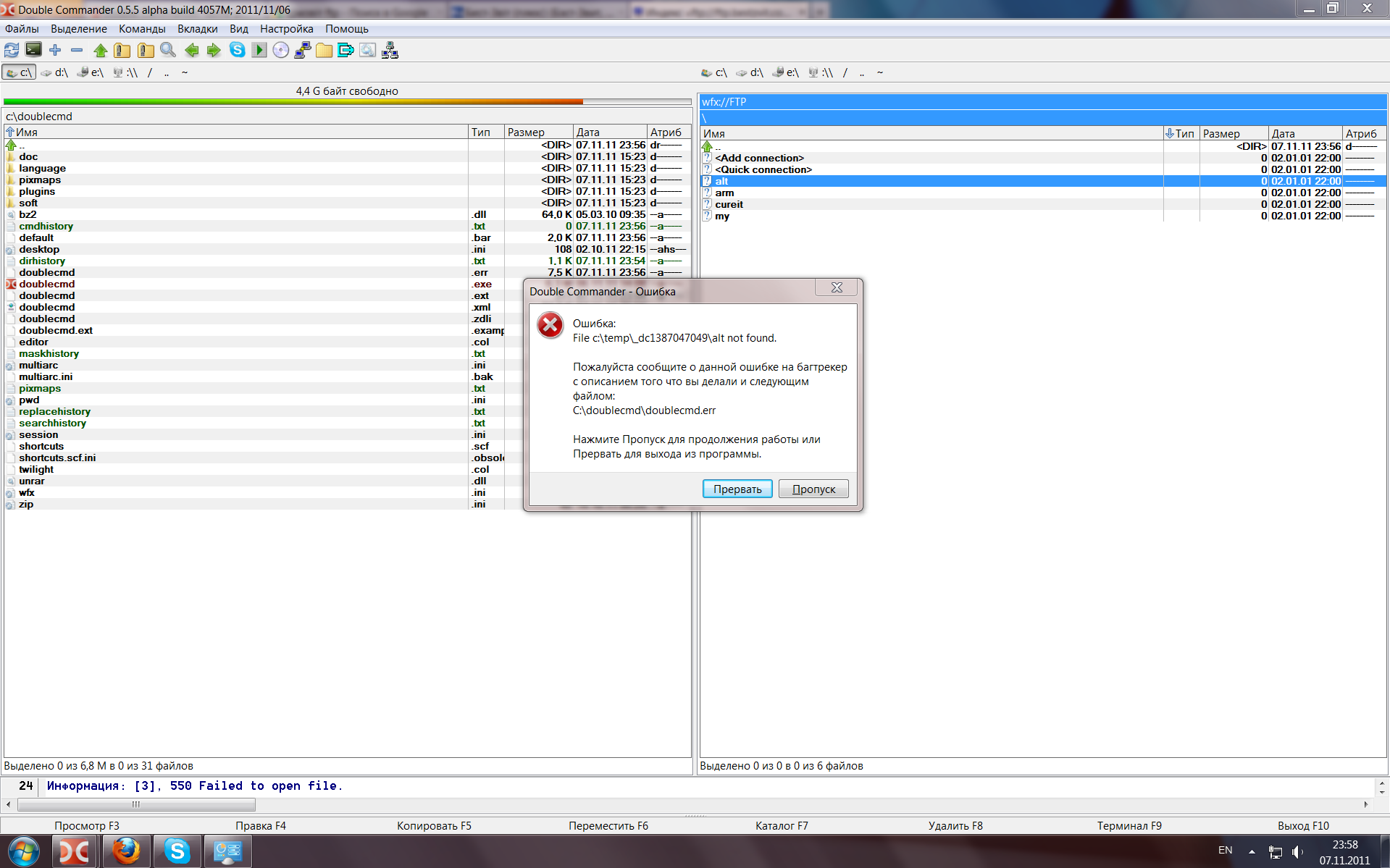 Наверное ето сюдаже У меня слетает еще при одновременном отображении одного и того же FTP коннекшена на обоих панелях (имя коннекшина 1 символ, ввожу пустой пароль(необязятельно), для гарантии можно подключать на второй панели пока первая получает список файлов) |