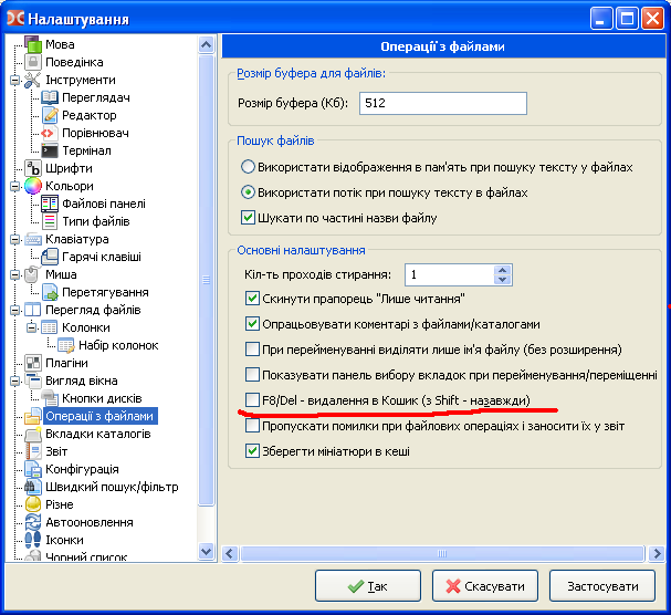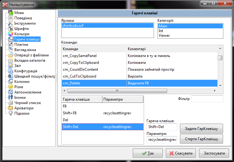 There is no separate option for Shift+Del hotkey (but it should be always registered because of this option on screenshot) |