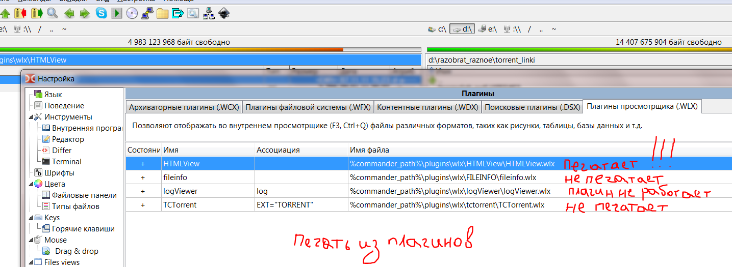 Печать работает только для тех плагинов, которые её поддерживают (в ТС точно также). А плагины FileInfo и TCTorrent не поддерживают печать. logViewer работает, если правильно указать детект-строку EXT="LOG" Сделал чтобы пункт меню печать был активен только для плагинов, которые её поддерживают. По второму пункту: один баг - один баг-репорт (чтобы не было путаницы что исправлено, а что нет). Так что для него лучше завести отдельный баг-репорт. |