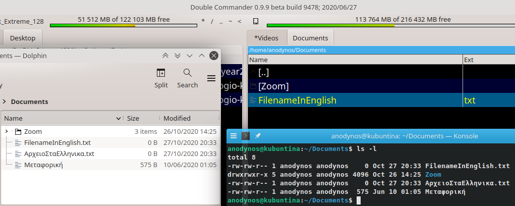 | Description | All filenames containing Greek characters (I tried creating those files on Linux & on Windows) are completely hidden. I can see the files fine with `$ ls` and on Dolphin but not on Double Commander...! I have Show Hidden & System files enabled, just in case... | ||||