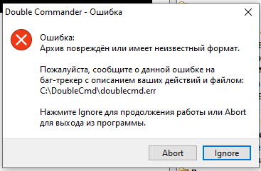 Вначале такого архива там точно не было!!! Я просто пробовал несколько раз. Видимо сначала он по какой то причине создался, а потом уже был там битый. Видимо надо было самый первый файл doublecmd.err сохранить. |