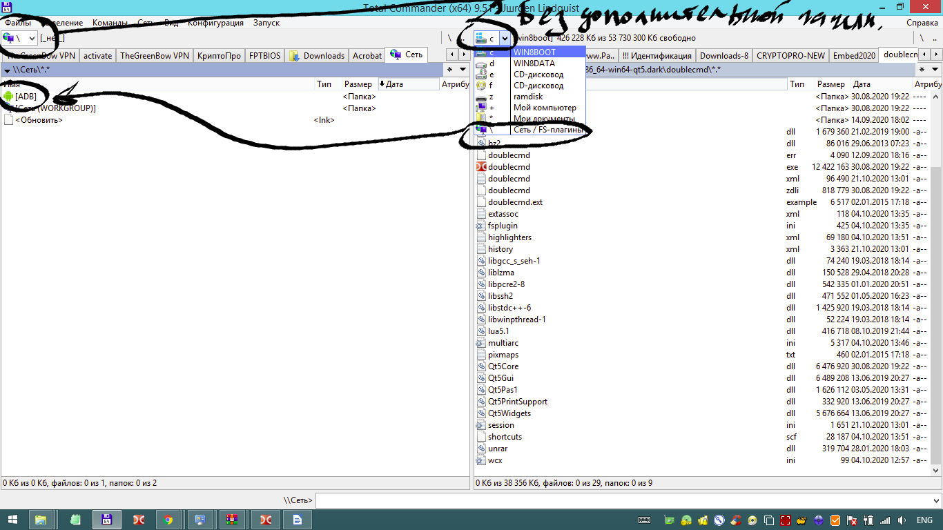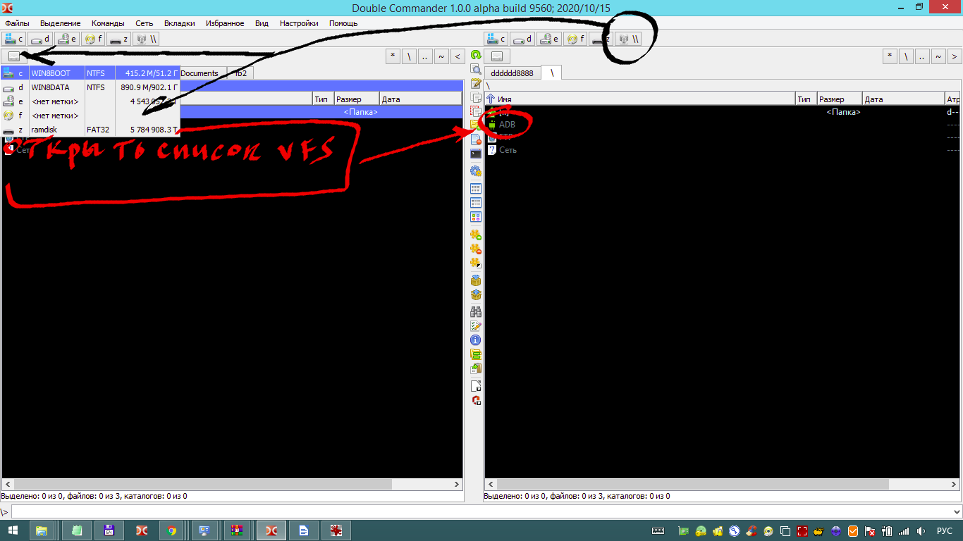 | Description | Feature request. Add set checkbutton "Open list VFS" in button disks for Plugin ADBPlugin.wfx64 Добавление функциональности - "Открыть список VFS" в книпки дисков для ADBPlugin.wfx64 Добрый день! Пожалуйста, добавьте функциональность "Открыть список VFS" галочку(check button) выдранную из Настройки-> Вид окна-> Кнопки дисков в Настройки-> Вид окна-> Кнопка списков дисков-> [V] Открыть список VFS, чтобы на экранах с маленьким разрешением, в том числе и на ноутбуках можно было сэкономить часть экрана отключив не нужную полоску, как компонент основного окна, оставив больше рабочего места. Нужно, например, для задействования модуля c:\doublecmd-1.0.0.r9541.x86_64-win64-qt5.dark\doublecmd\plugins\wfx\androidadb\ADBPlugin.wfx64 без активации не нужной полоски. Смотрите приложенные три скриншота. Благодарю. | ||||