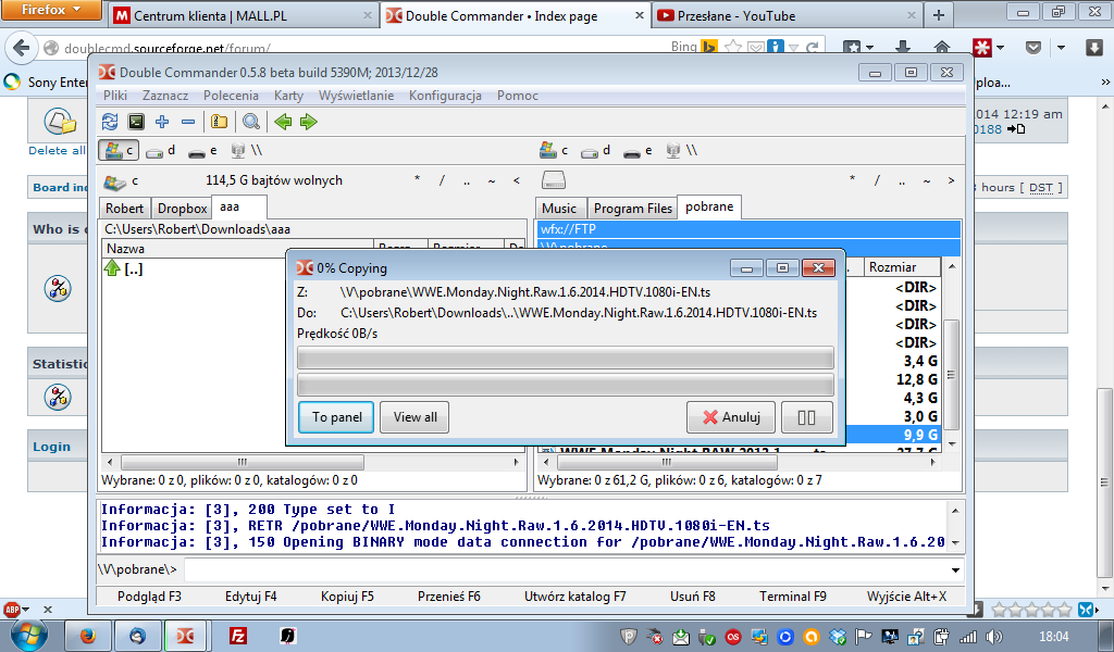 | Description | Wherever I try to transfer (copy or move) large file (starting from few gigabytes)from my FTP (normal or SFTP, via both passive or active mode), app get "not responding" at 0%. After closing the tranfer window and trying to eg. move to directory above, an "App stops working" message appear, and I have to "force close" it. |